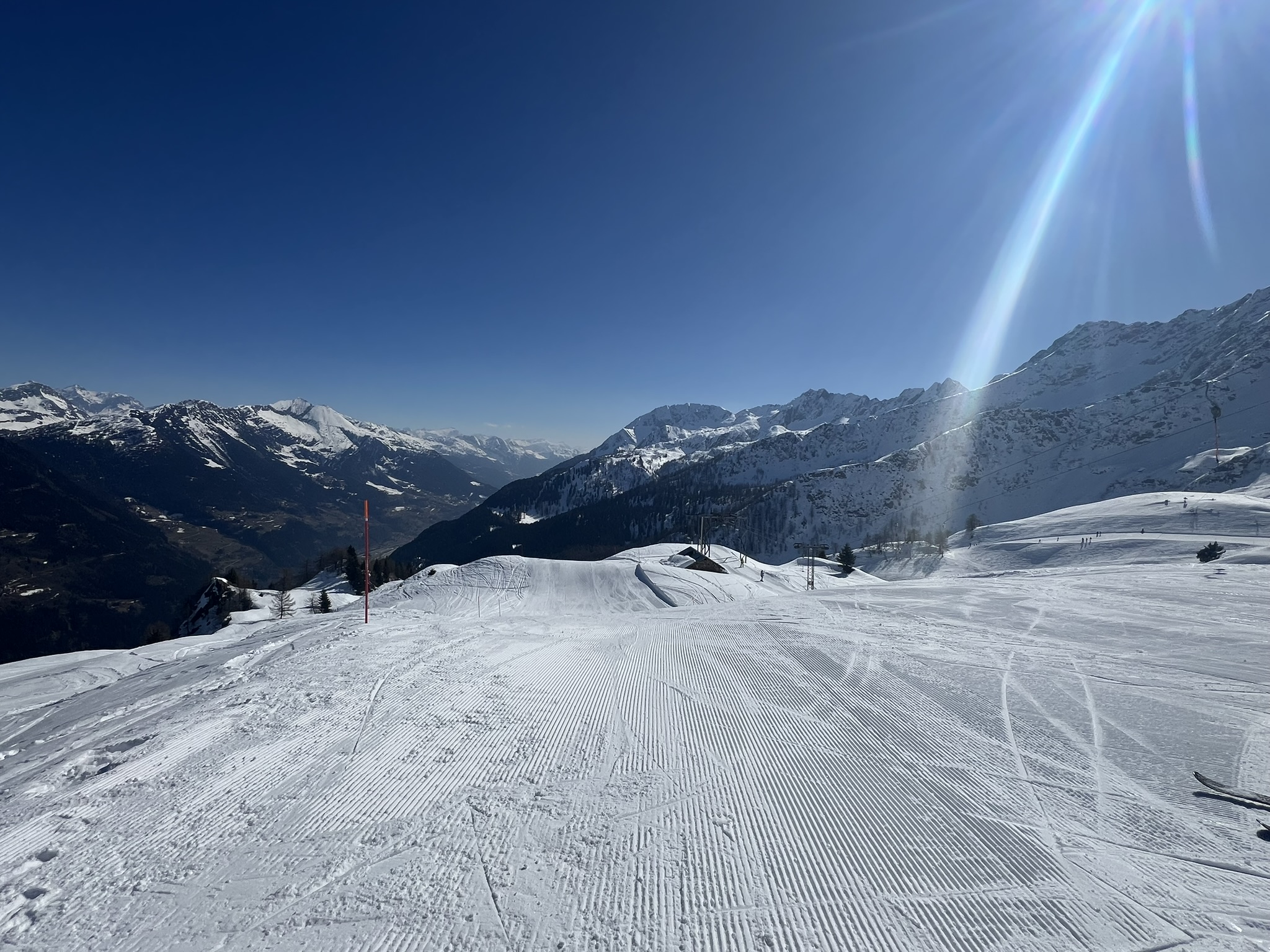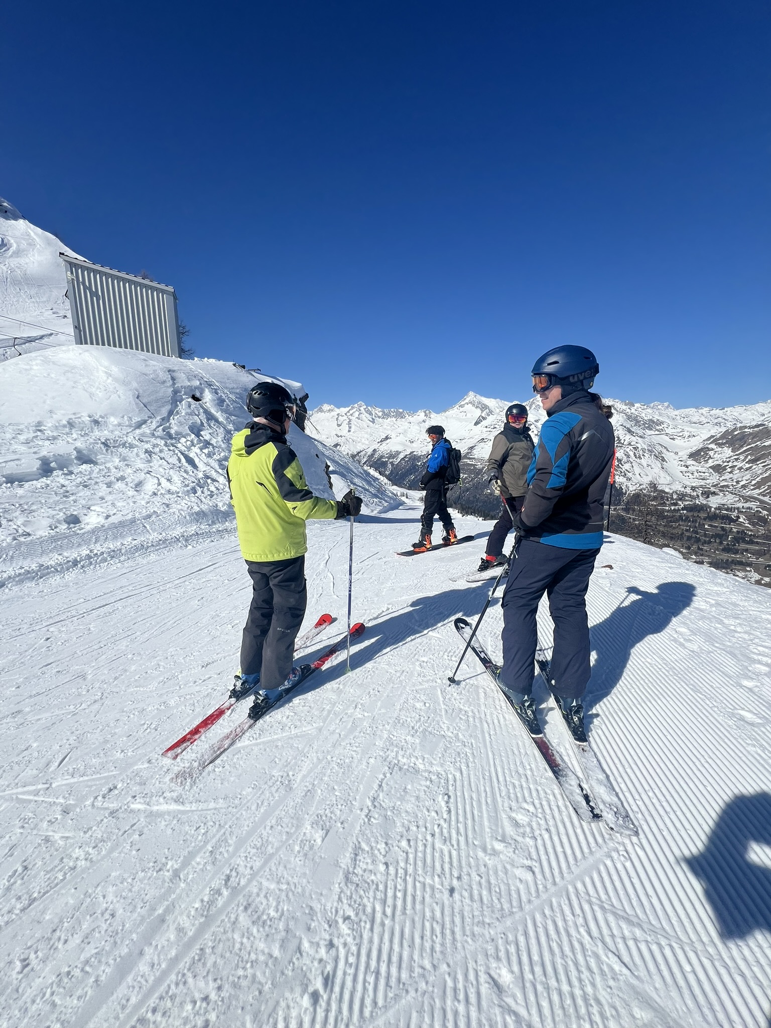 Wolken suchten wir an diesem Tag vergebens. Auch die Pistenverhältnisse waren perfekt. Obwohl gleichentags ein Europacuprennen der Aerials-Athleten stattfand – auch der aktuelle Weltmeister Noé Roth war vor Ort -, gab es nur wenige Skifahrer auf den Pisten. Trotz der Sonne und den angenehmen Temperaturen war der Schnee nicht sulzig. Im Restaurant Pesciüm genossen wir auf der Sonnenterrase unser Mittagessen. Nach weiteren Fahrten und einem Kaffee an der Sonne begaben wir uns im späteren Nachmittag auf den Heimweg. Urs brachte uns sicher zurück nach Mettmenstetten.